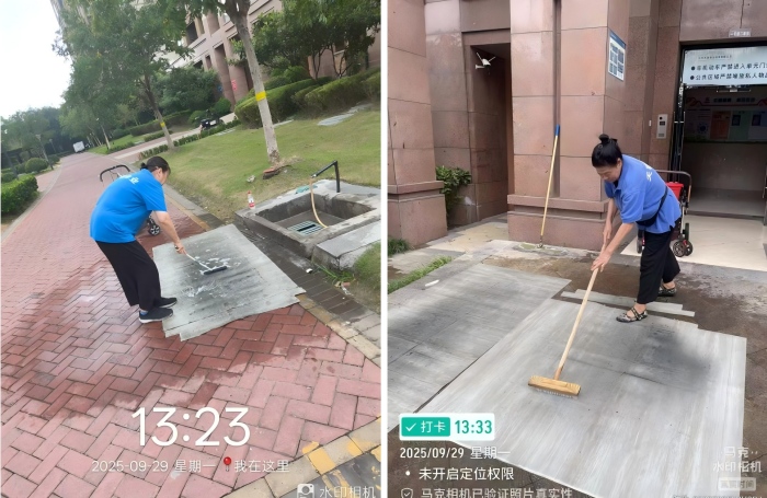 天骐物业专门设置了清洗区域,物业工作人员全心投入,对小区28部电梯地垫进行了清洗,通过反复刷洗和冲洗,成功去除顽固污渍,使地垫恢复洁净,再用自来水将地垫彻底冲洗干净,确保其恢复洁净与光彩。